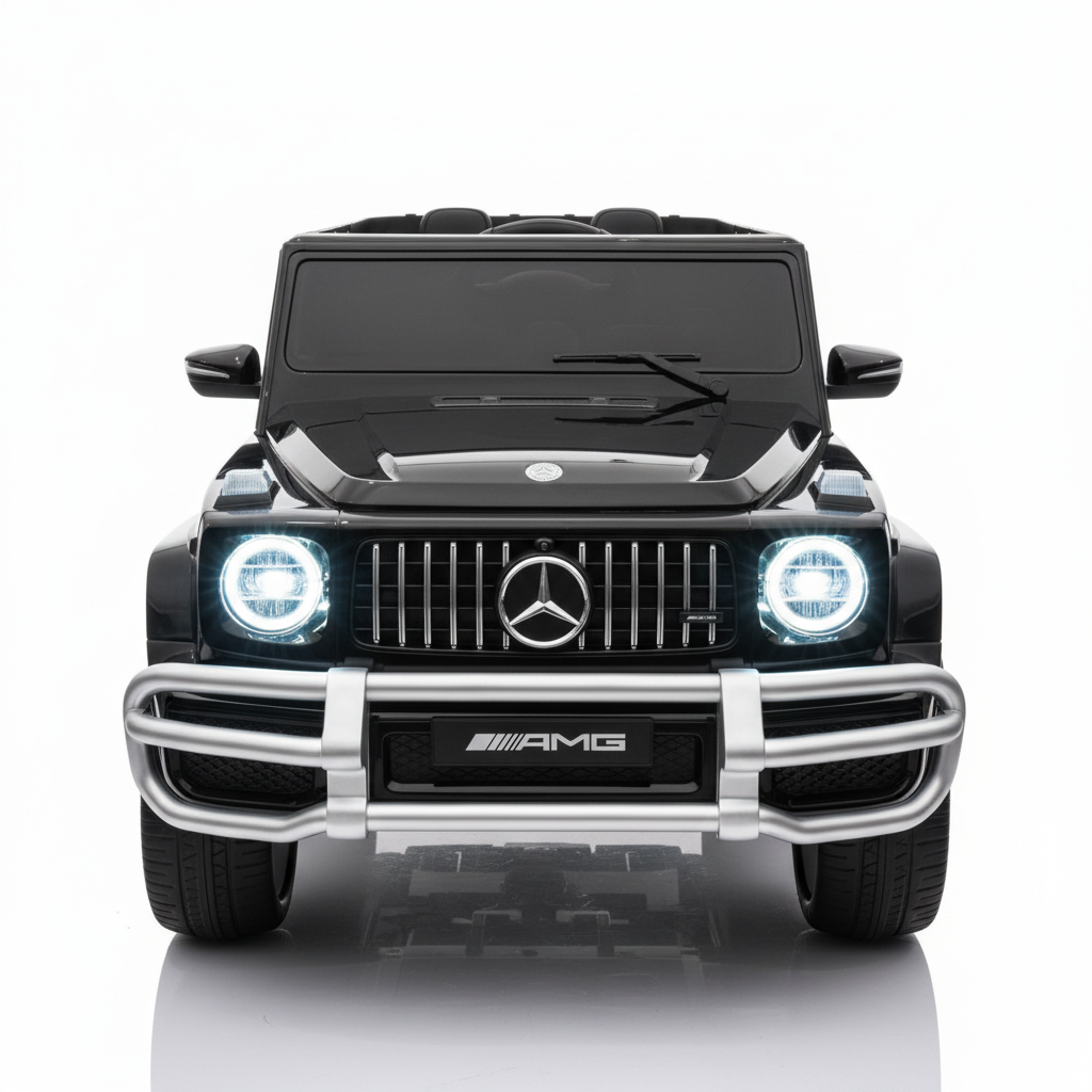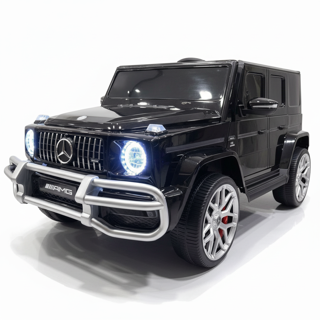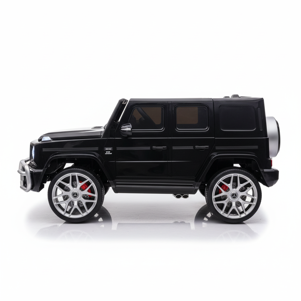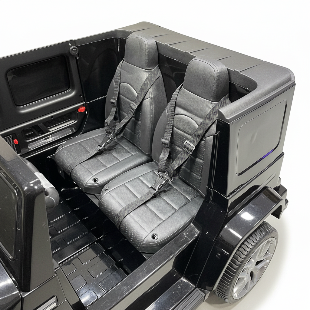 De 2-persoons Mercedes G63 AMG kinderauto! De 2-persoons G63 is de grote broer van de 1-persoons variant! Dit model kinderauto beschikt over extra mooie en felle Led-verlichting. Daarnaast beschikt de Mercedes G63 kinderauto over 2 zitplaatsen met aparte gordels! De gespoten zwarte metallic lak maakt dit kindervoertuig één van de mooiste kinderauto's!