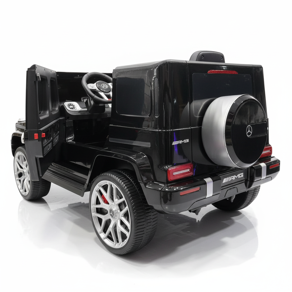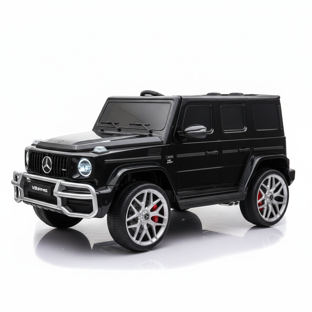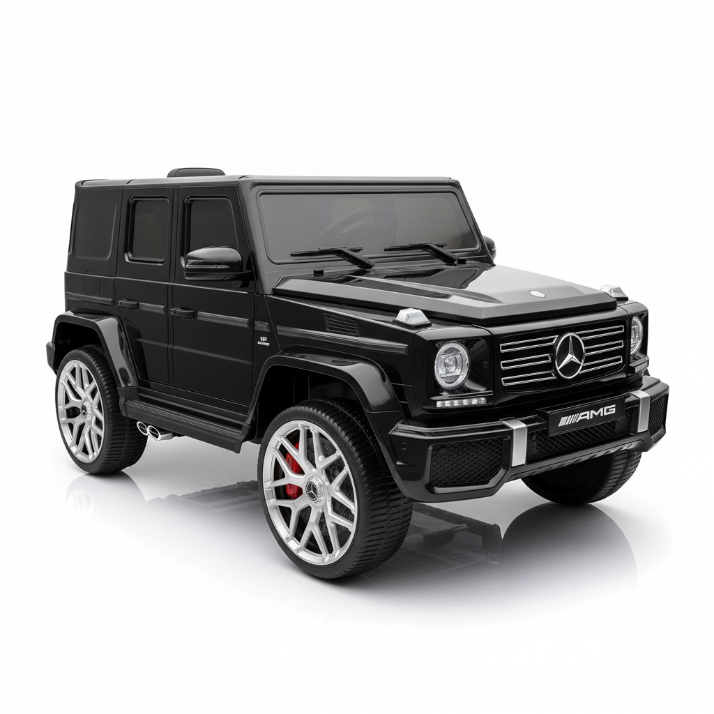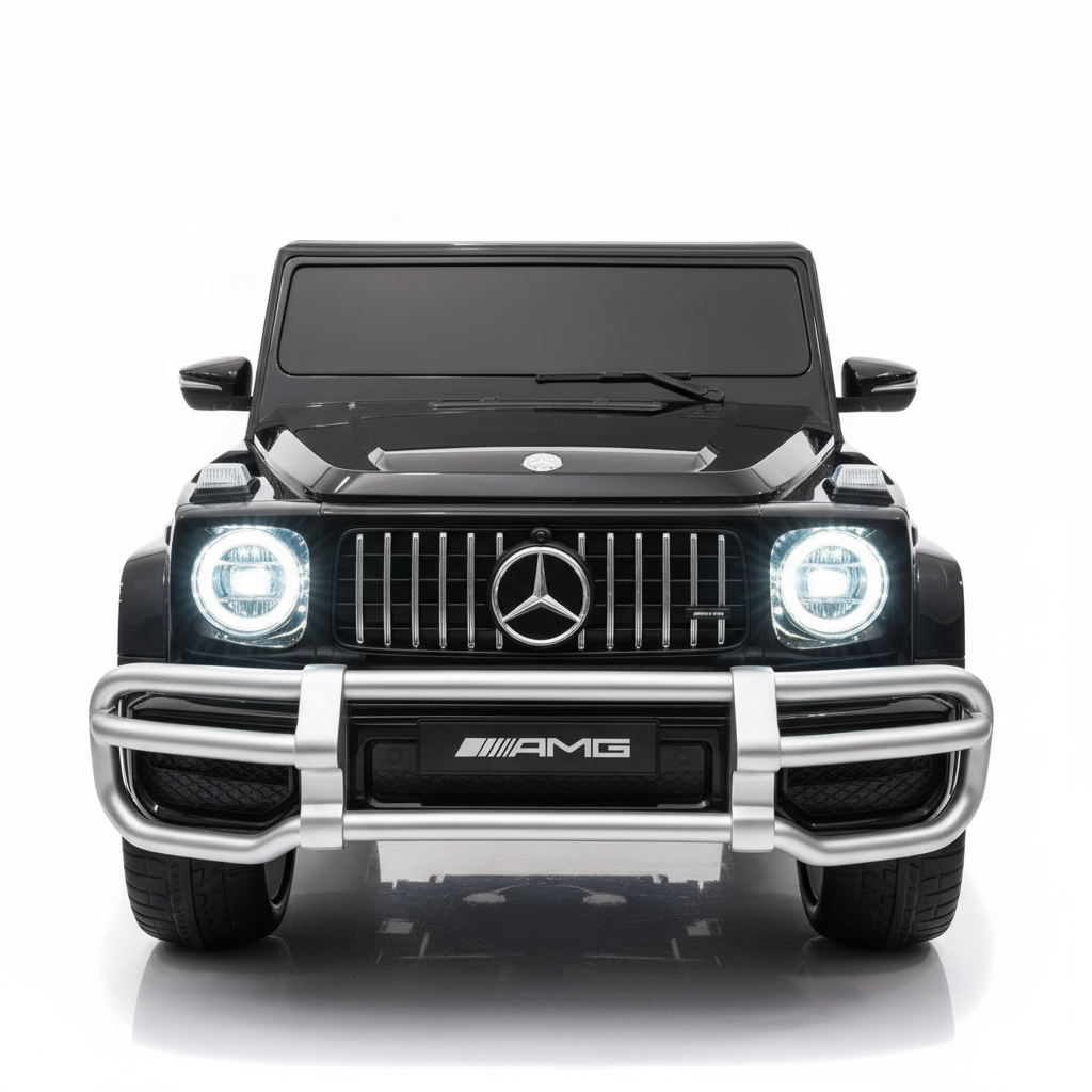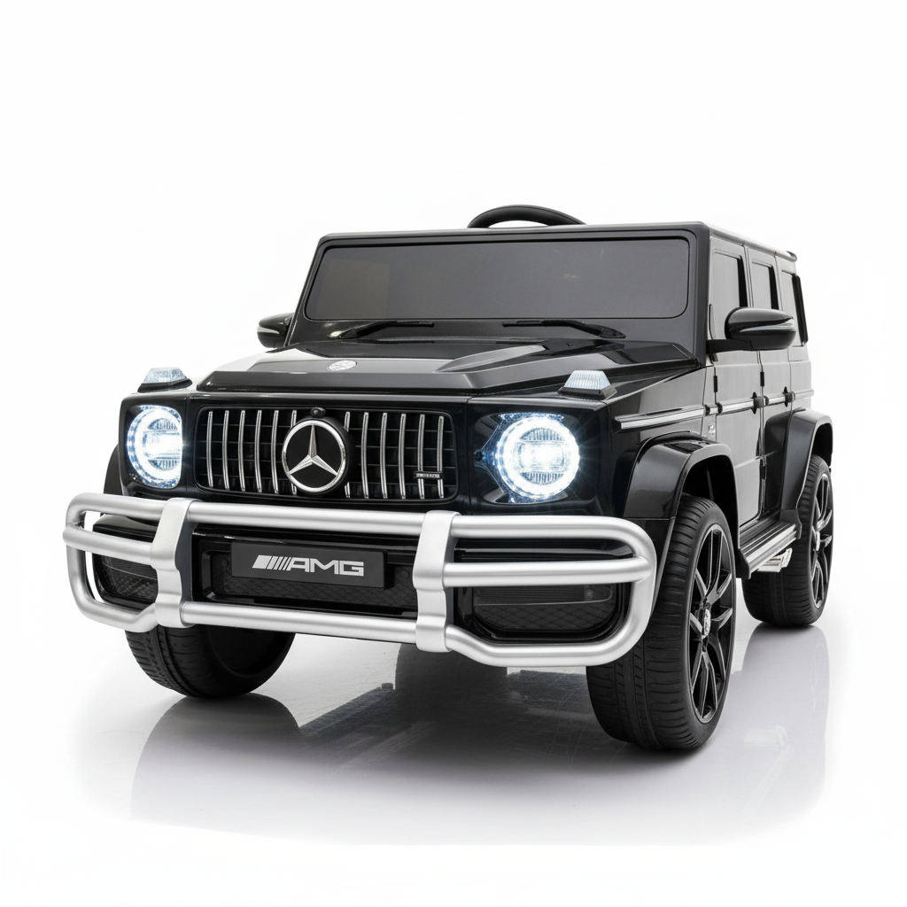 De 2-persoons Mercedes G63 AMG kinderauto! De 2-persoons G63 is de grote broer van de 1-persoons variant! Dit model kinderauto beschikt over extra mooie en felle Led-verlichting. Daarnaast beschikt de Mercedes G63 kinderauto over 2 zitplaatsen met aparte gordels! De gespoten zwarte metallic lak maakt dit kindervoertuig één van de mooiste kinderauto's!