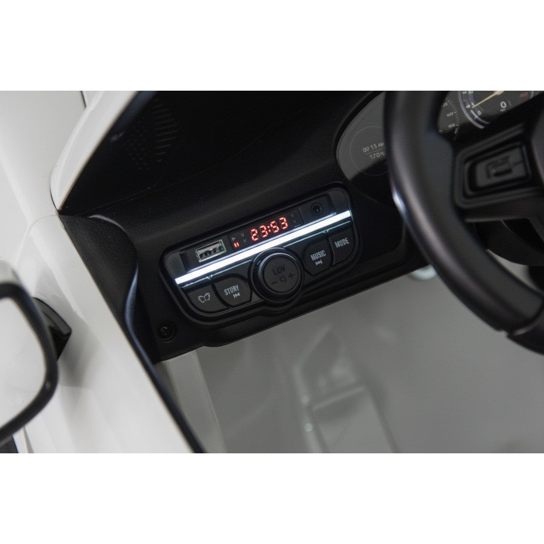 De GT3 RS 24V beschikt over een ingebouwde MP3-speler, USB-poort, AUX-aansluiting en Bluetooth, zodat je kind tijdens het rijden zijn of haar favoriete liedjes kan beluisteren.