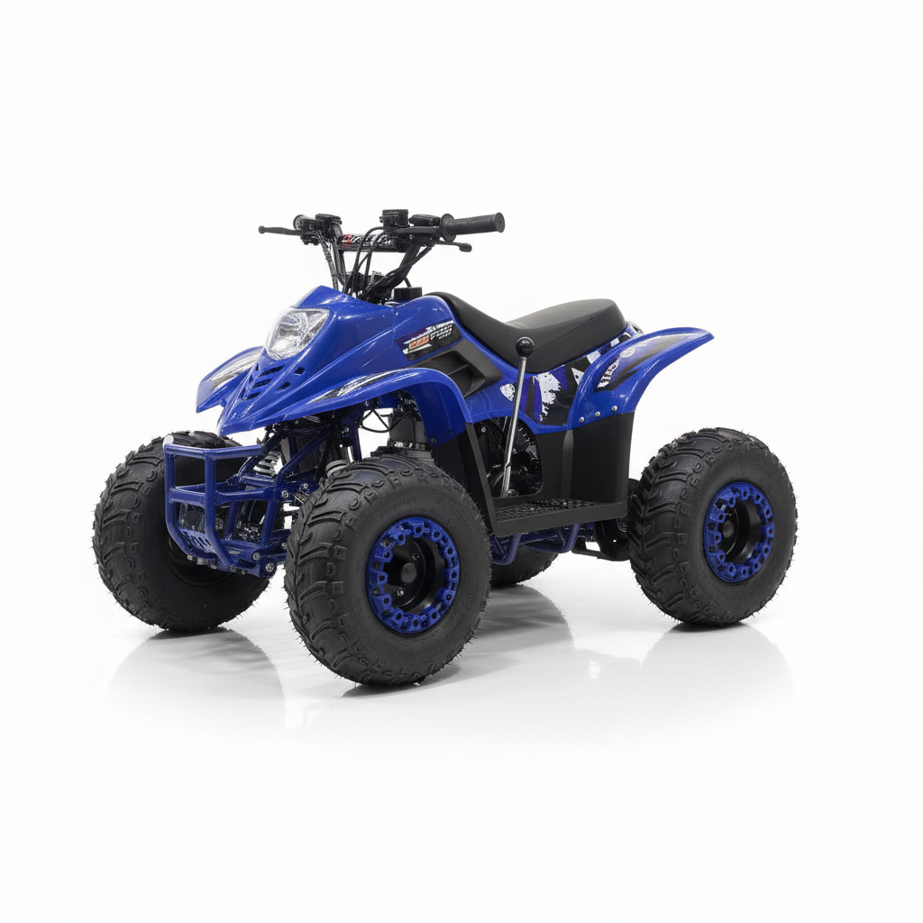 Dat deze ATV Kinder Quad Evolution 125cc Blauw als krachtig bestempeld kan worden, zeggen we met gevoel voor understatement. De ruime inhoud van de cilinder, 125cc in totaal, is niet het enige wat dit model tot één van de krachtigste kinderquads van nu maakt. Deze 125cc 4-takt kinder quad combineert dit namelijk met grote afmetingen, een stevig frame en grote veringen die zeer goed werken. Kracht wordt gecombineerd met snelheid, want deze kinderquad op benzine kan een maximale snelheid van 65 km/u behalen. Dankzij de begrenzing stel je zelf als ouder de maximaal haalbare snelheid van deze quad in.