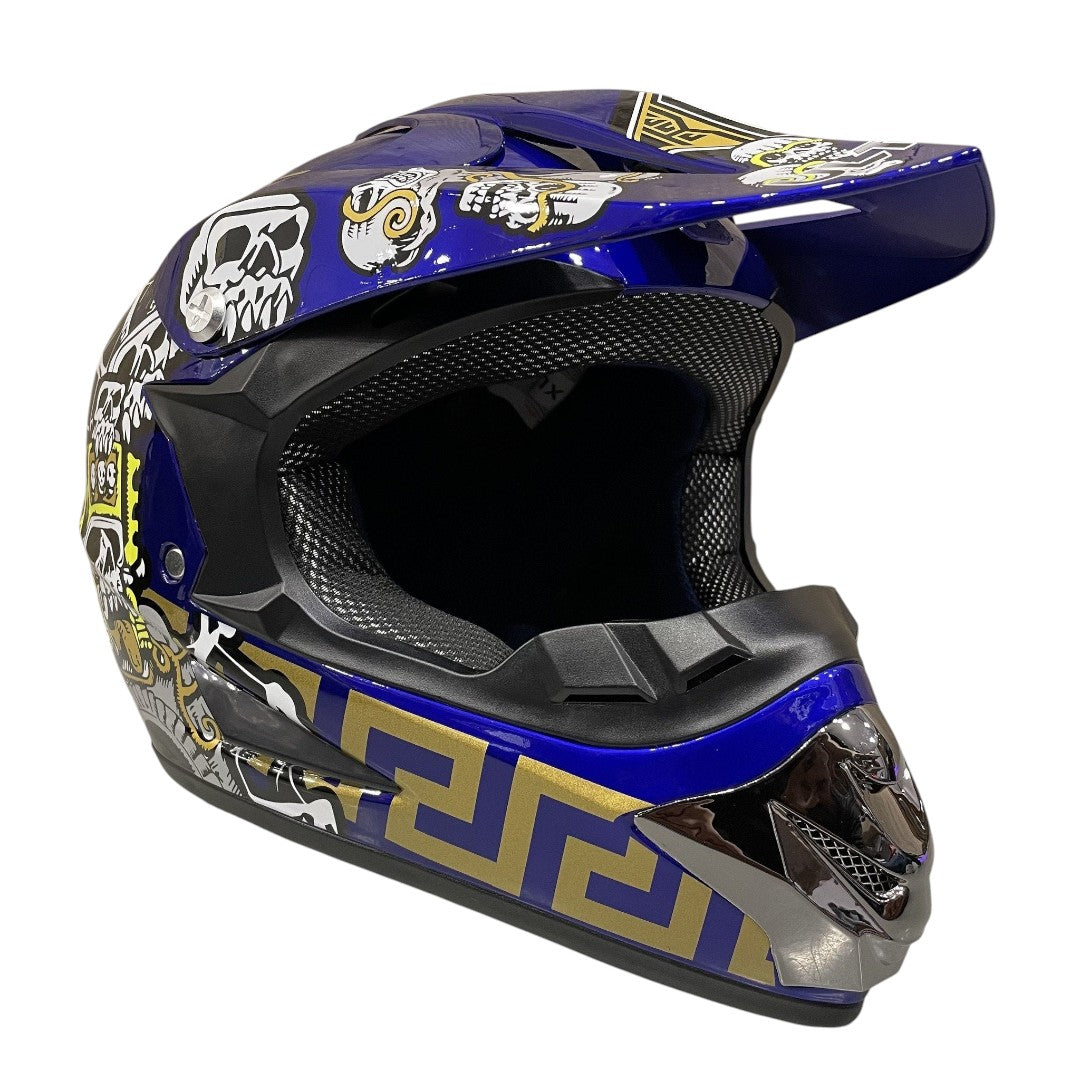 Crosshelm voor kinderen verkrijgbaar in verschillende kleuren en maten. De helmen zijn gecertificeerd en voorzien van gewatteerde en uitneembare voering van ultra-pluche zweet absorberend en tevens is de voering wasbaar. Deze helmen zijn duurzaam ontwikkeld en gemaakt van ABS-plastic en bieden mede dankzij de veiligheidsslot met eenvoudige riemverstelling een perfecte pasvorm.