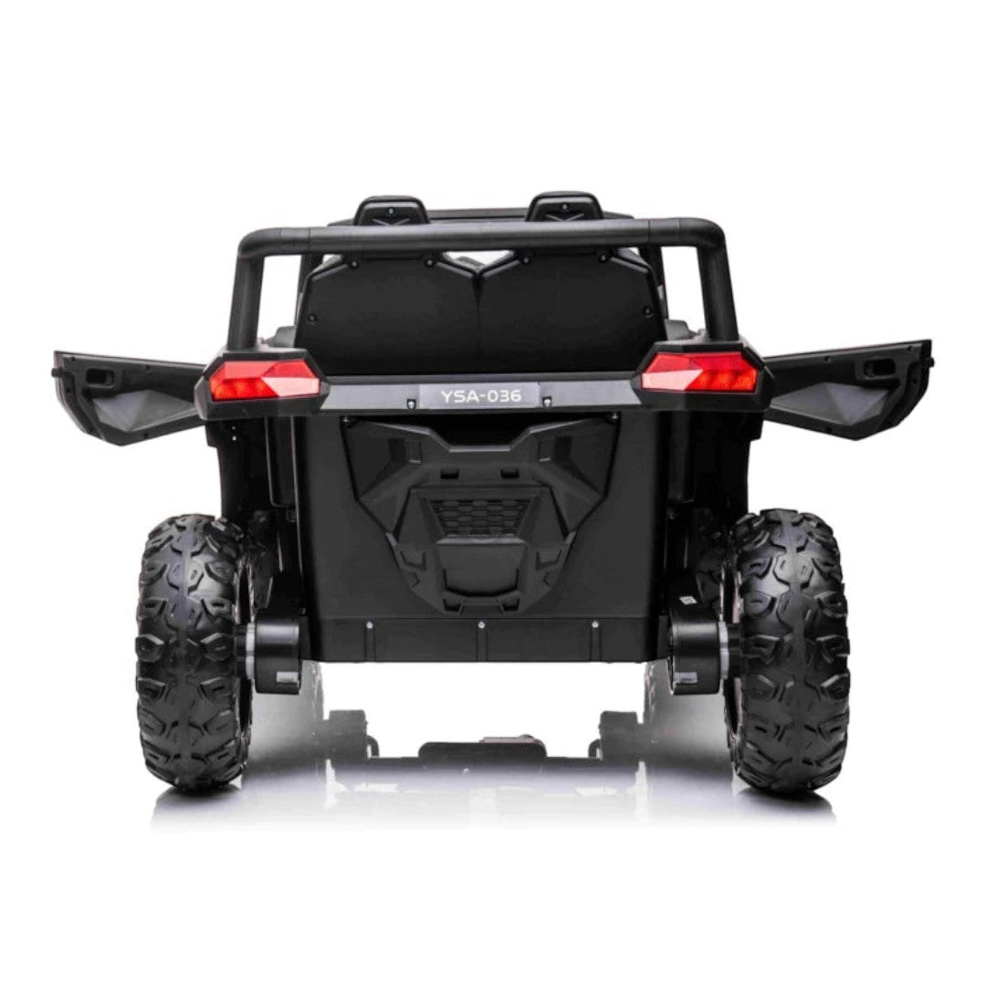 Deze elektrische buggy 1,5-persoons kinderauto is vanaf nu verkrijgbaar bij CarKiddo. Ben je op zoek naar een 1,5-persoons variant, dan is dit de elektrische buggy voor jou. Als je bekend bent met de hoge kwaliteit van de auto’s van de buggy's, dan weet je wat je kunt verwachten. Het stoere uiterlijk herbergt een krachtige en stevig gebouwde kinderauto die onder meer voorzien is van extra grote banden, een veiligheidsgordel en nog veel meer. Het ideale cadeau voor jouw kleine snelheidsduivel.