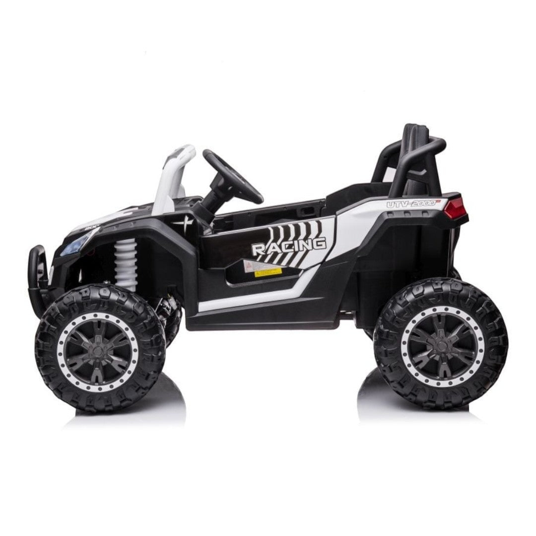 Met een maximum snelheid van 6 km/h is dit de ideale kinderauto voor jonge kinderen. Bovendien behoud je als ouder altijd de controle dankzij de meegeleverde afstandsbediening. Extra leuk is het feit dat deze kinderauto voorzien is van een MP3 spelers met USB, FM radio, bluetooth en AUX aansluiting. Zo kan je kindje tijdens het rijden altijd luisteren naar zijn of haar favoriete muziek. De stoere kleurencombinatie voorziet deze kinderauto van een strak en cool uiterlijk. Deze 1,5-persoons elektrische buggy heeft een extra grote 12V accu. Zo kan er lang gereden worden zonder dat de kinderauto opgeladen hoeft te worden.