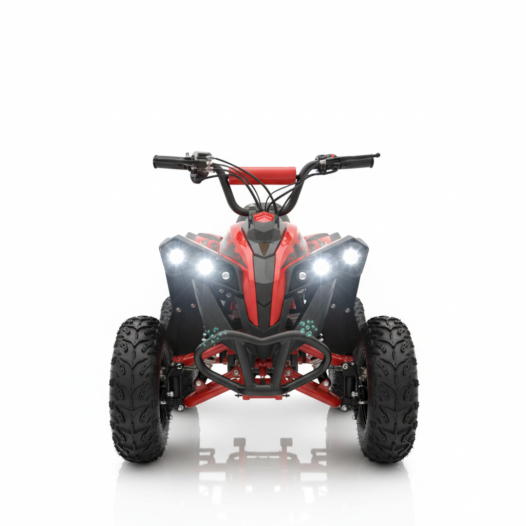 Deze 1000 watt brushless kinderquad van CarKiddo behoort tot de meest krachtige kinderquads uit ons assortiment. De brushless motoren staan bekend om hun extreem lange levensduur en ongekende vermogen, deze motoren hebben 40 tot 50% meer vermogen dan de standaard motoren. Deze kinderquad is elektrisch en in meerdere kleuren beschikbaar. Deze elektrische kinderquad 48v beschikt over een enorm vermogen en een accu met een super lange levensduur. Dit in combinatie met het extra stevige metalen frame, de uitstekende vering en de rubberen terreinbanden zorgen ervoor dat deze kinderquad geschikt is voor uiteenlopende soorten terreinen. Hierbij kan deze elektrische kinderquad een gewicht tot maximaal 90 kg aan. Dit is de ideale kinderquad om mee te beginnen voor jouw zoon of dochter.