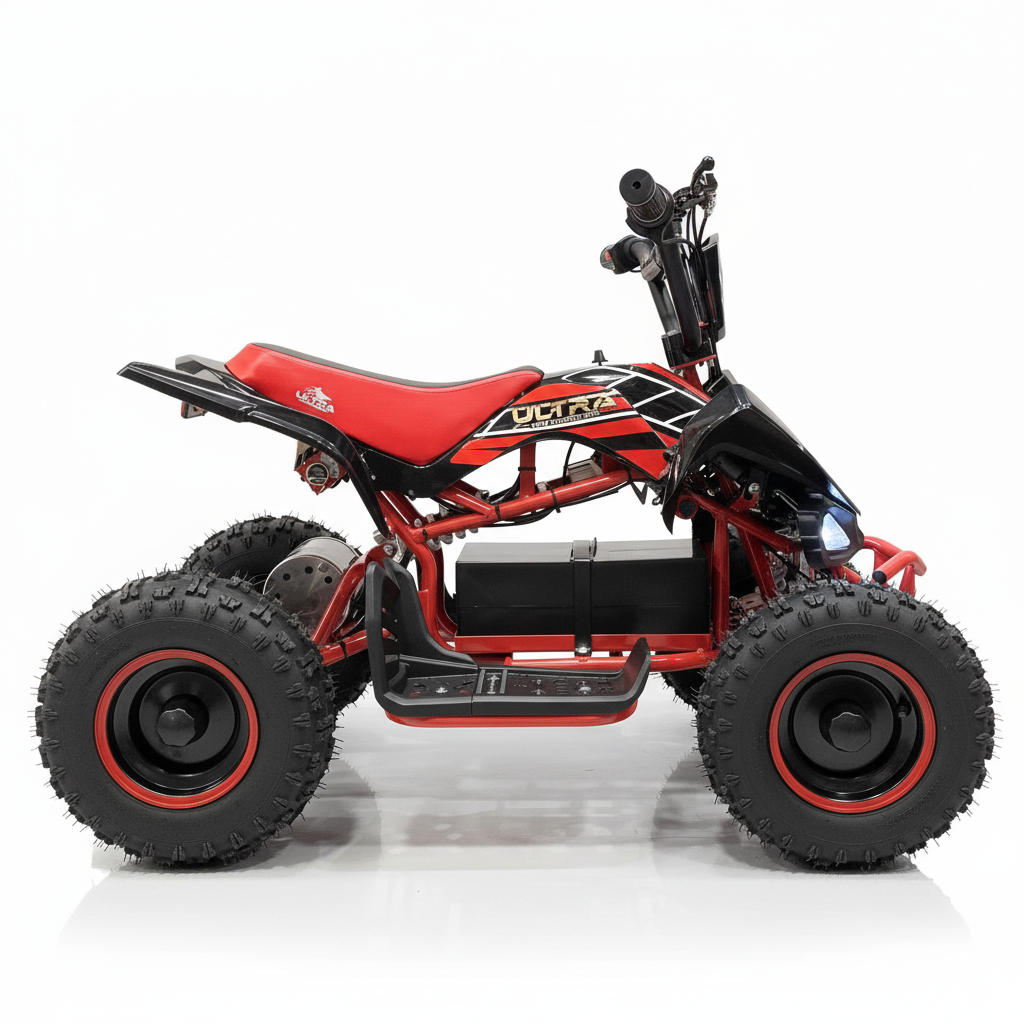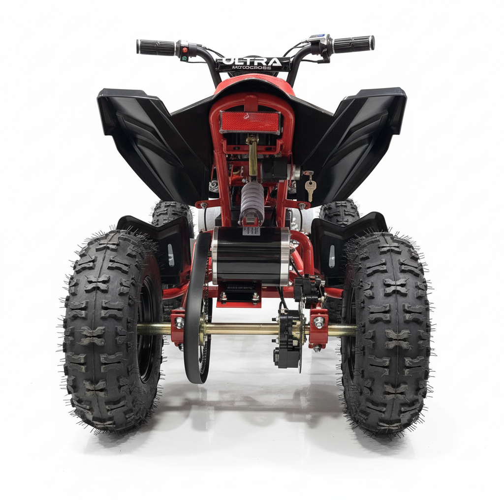 Een elektrische kinderquad is een verantwoorde manier om je kind te leren hoe het moet omgaan met een voertuig en waar op gelet moet worden bij hoge snelheden. Naast de neutrale stand zijn er drie snelheden waarop deze kinderquad begrenst kan worden: 5 km/u, 15 km/u en 30 km/u. Dit stel je zelf in met behulp van een uitneembare sleutel. Voor- en achteruitrijden is mogelijk. Deze elektrische kinderquad is geschikt voor alle soorten terreinen, van een weide tot aan de crossbaan. Dit komt onder meer dankzij het flinke vermogen, het extra stevige metalen frame, de rubberen terreinbanden en de formidabele vering. Deze 1000 watt brushless kinderquad is geschikt voor gewichten tot maximaal 90 kg.