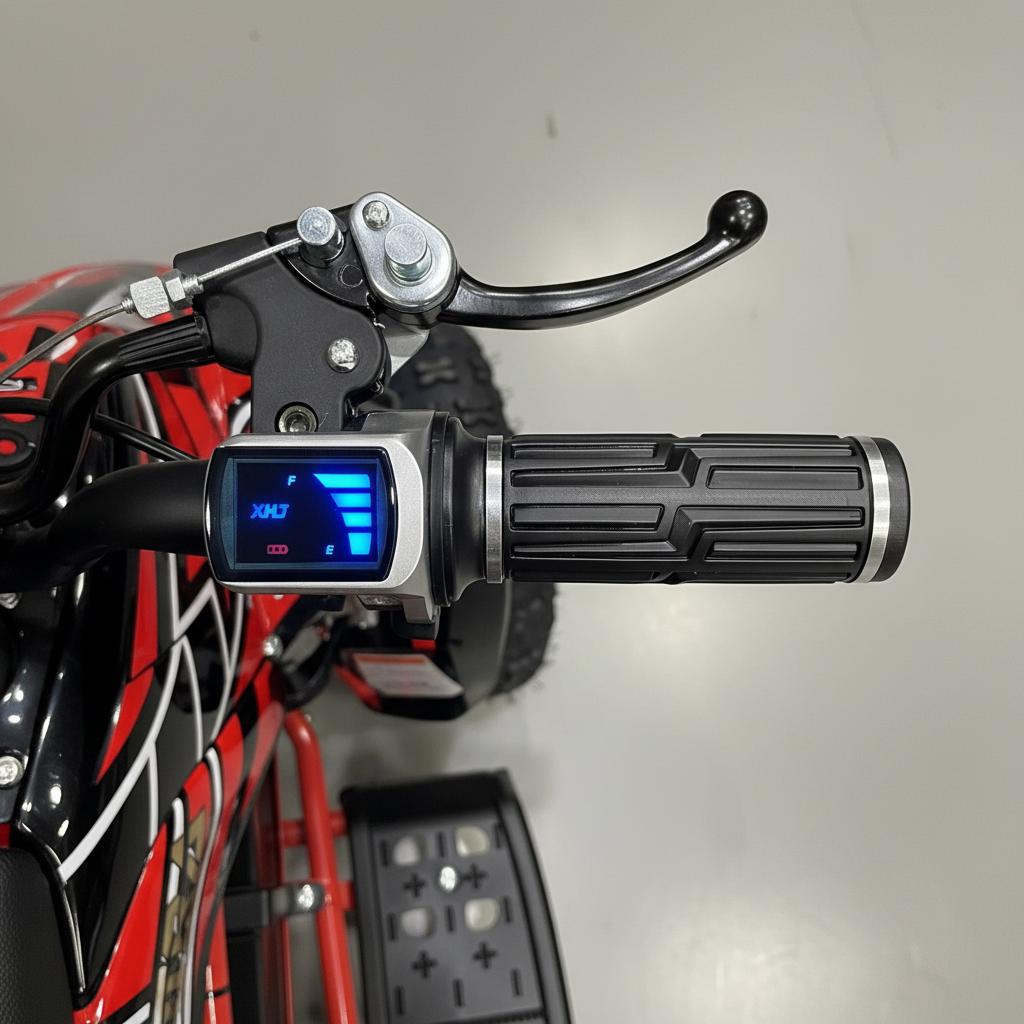 Jonge snelheidsduivels opgelet, want vanaf nu is deze vernieuwde 1000 watt brushless kinderquad verkrijgbaar bij CarKiddo. Deze kinderquad is elektrisch, waardoor dit model een stuk beter is voor het milieu in vergelijking met een kinderquad die op benzine rijdt. Dit is een elektrische kinderquad 36v, wat inhoudt dat deze kinderquad voorzien is van een 36v accu. Deze accu gaat ongelofelijk lang mee. Bovendien kun je dankzij de digitale batterijmeter meteen zien als het tijd is om deze elektrische kinderquad op te laden. Jong geleerd is oud gedaan, dus bestel vandaag nog deze 1000 watt brushless kinderquad bij CarKiddo. De brushless motoren staan bekend om hun extreem lange levensduur en ongekende vermogen, deze motoren hebben 40 tot 50% meer vermogen dan de standaard motoren.