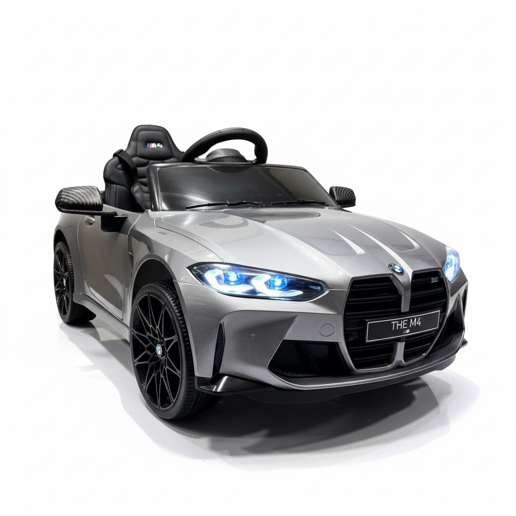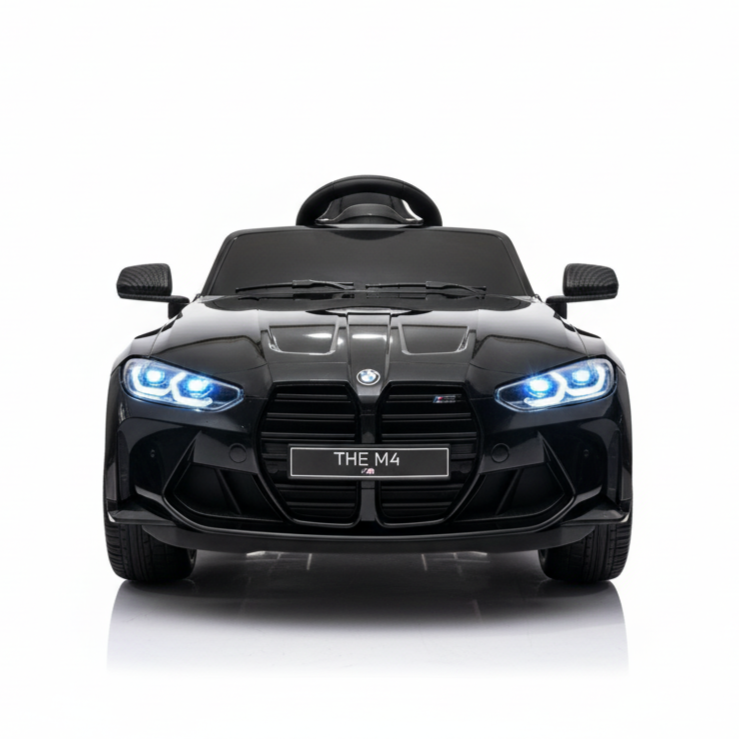 Met deze metallic zwarte BMW M4 kinderauto maak je indruk. Dit 1-persoons model is voorzien van verlichting, soft start en een claxon. Hierdoor is deze kinderauto altijd zichtbaar en hoorbaar. Je kindje zal ongelofelijk blij zijn met dit cadeau. Daarom koop je deze BMW M4 Elektrische Kinderauto metallic-zwart bij CarKiddo. Extra leuk is dat je een kenteken op maat kan laten maken, bijvoorbeeld met de naam van je kindje.