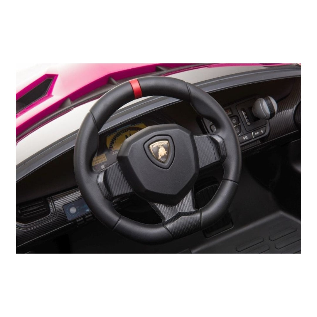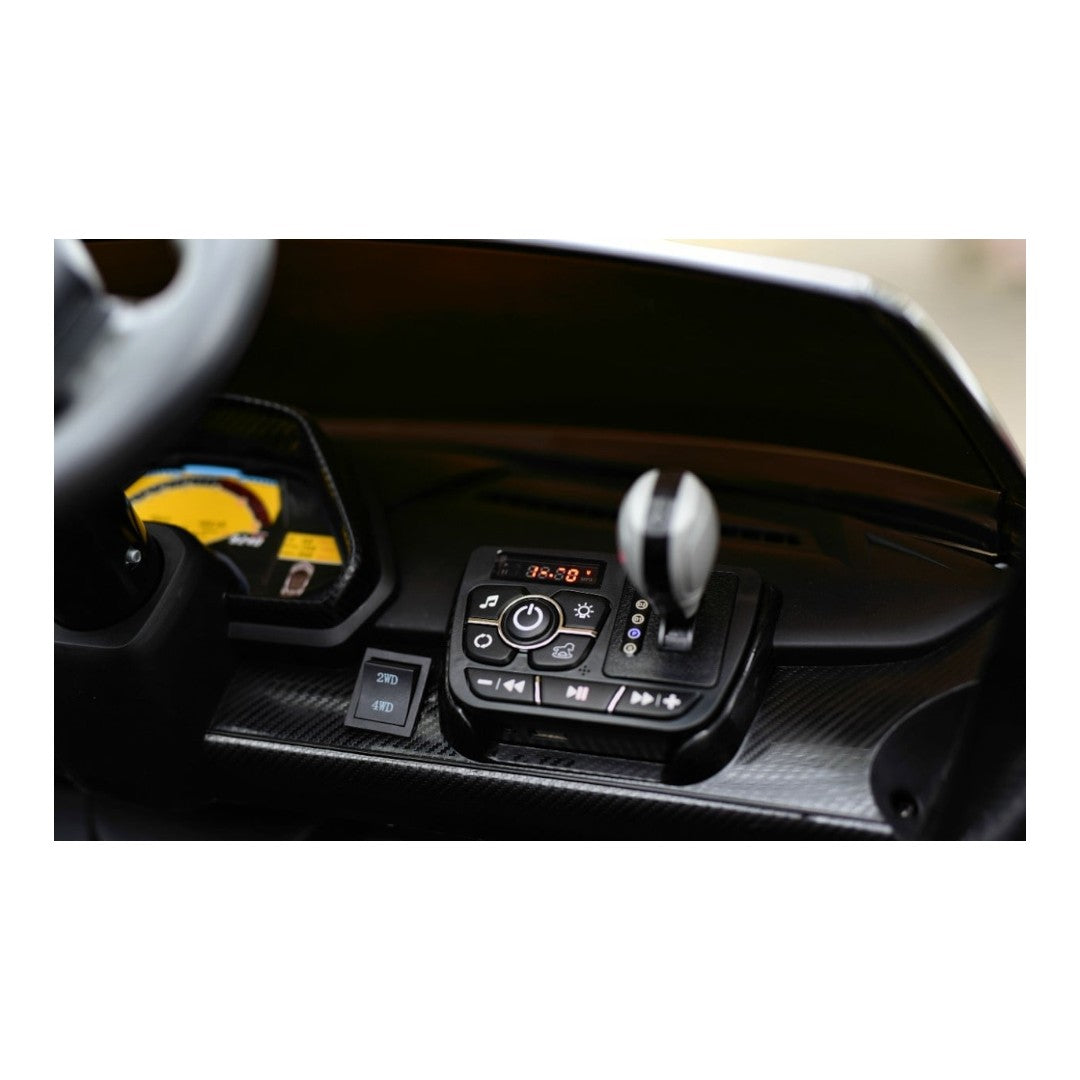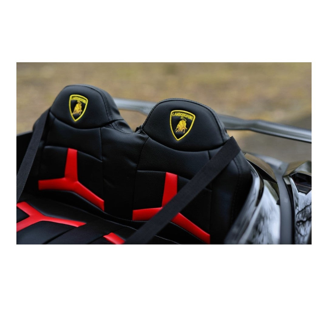 Deze Lamborghini Veneno is een 2-persoons kinderauto. Je kindje kan dus samen met iemand anders in deze auto rijden. Het maakt niet uit of het gaat om een broertje, zusje, vriendje, vriendinnetje, neefje of nichtje. De één rijdt terwijl de ander de passagier is. Samen spelen wordt op deze manier leuker dan ooit. Opvallend aan dit model zijn de mooie Butterfly deuren, de LED verlichting voor en achter, de comfortabele en verstelbare stoelen van leer en de twee heupgordels. Daarnaast wordt het rondrijden in deze Lamborghini kinderauto nog leuker dankzij de MP3-speler met Bluetooth en een AUX-ingang.