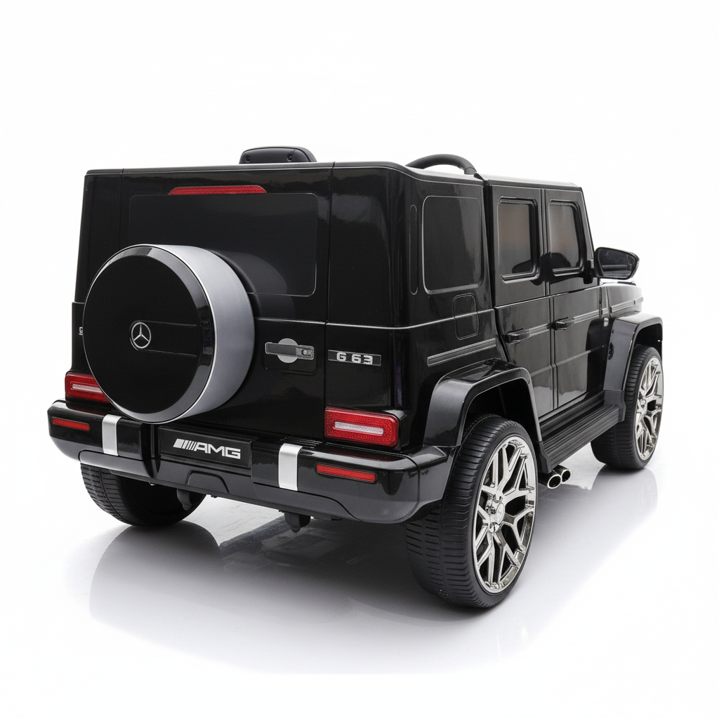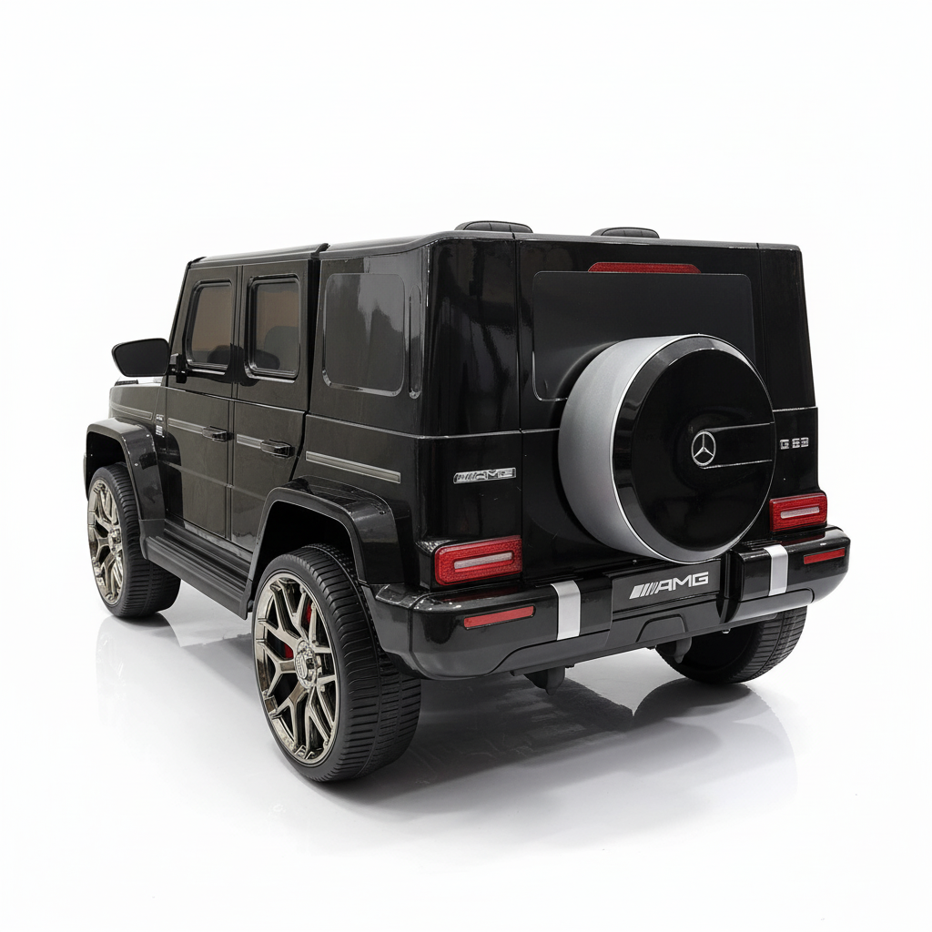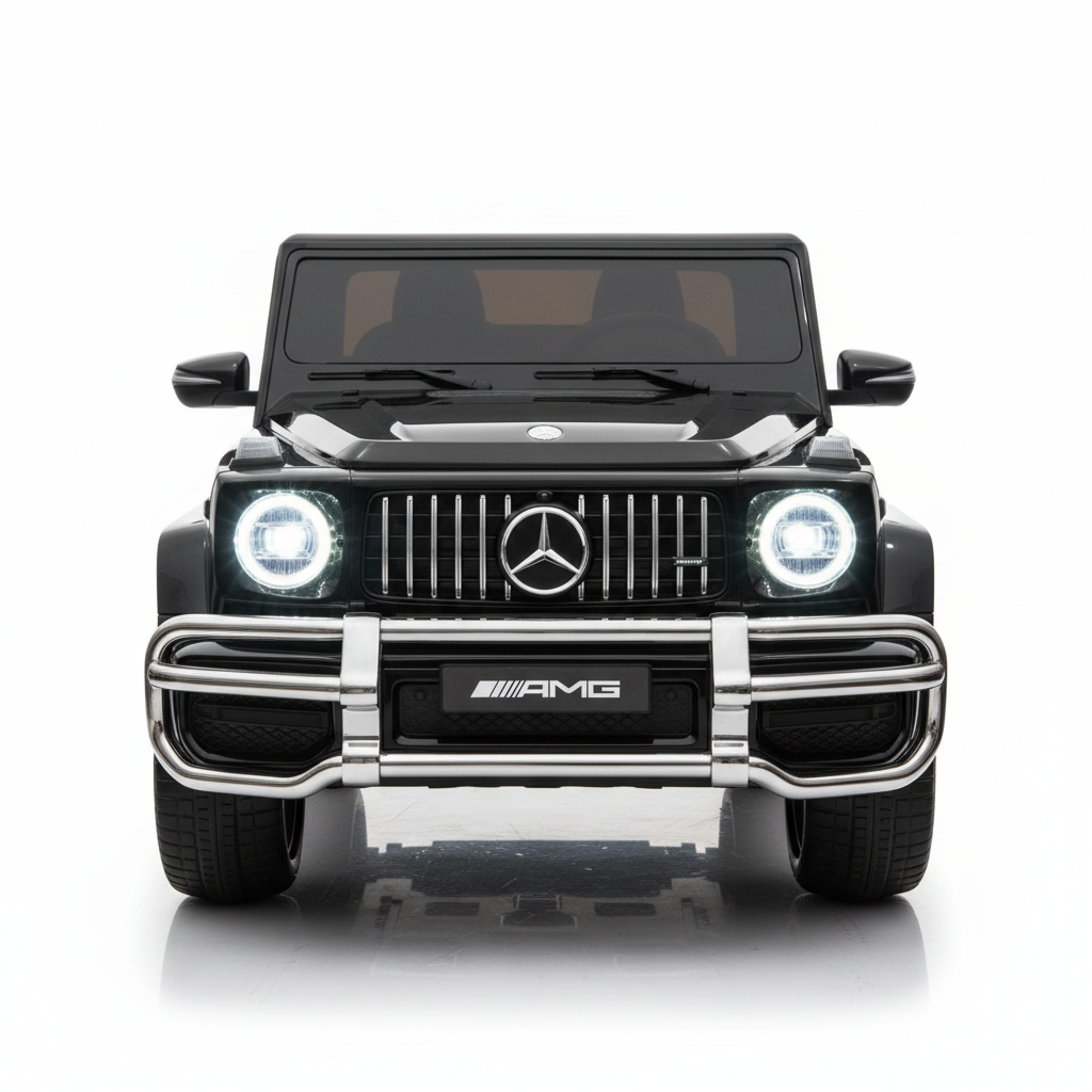 De 2-persoons Mercedes G63 AMG 24 volt kinderauto! De 2-persoons G63 is de grote broer van de 1-persoons variant! Dit model kinderauto beschikt over extra mooie en felle Led-verlichting. Daarnaast beschikt de Mercedes G63 kinderauto over 2 zitplaatsen met aparte gordels! De gespoten zwarte metallic lak maakt dit kindervoertuig één van de mooiste kinderauto's!