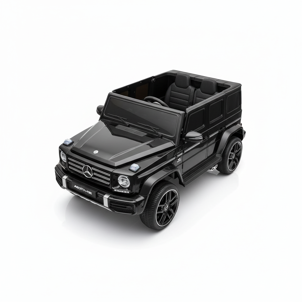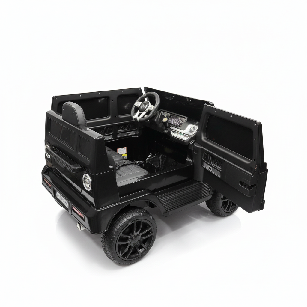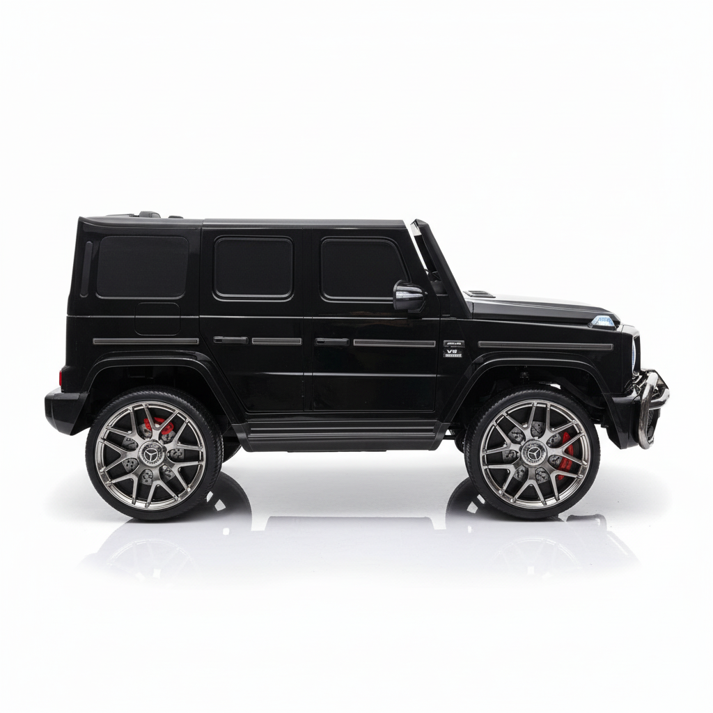 De 2-persoons Mercedes G63 AMG 24 volt kinderauto! De 2-persoons G63 is de grote broer van de 1-persoons variant! Dit model kinderauto beschikt over extra mooie en felle Led-verlichting. Daarnaast beschikt de Mercedes G63 kinderauto over 2 zitplaatsen met aparte gordels! De gespoten zwarte metallic lak maakt dit kindervoertuig één van de mooiste kinderauto's!
