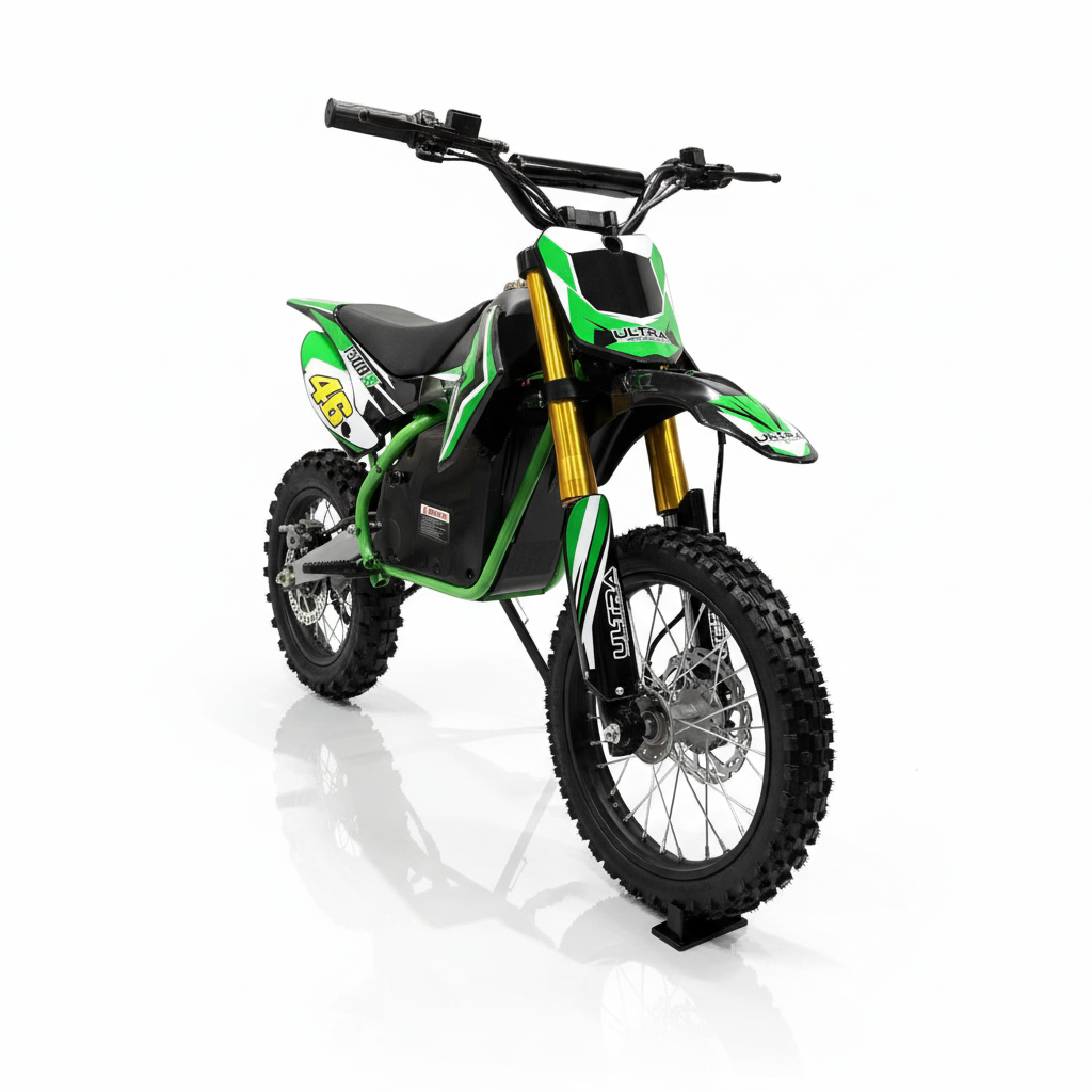 Hierboven stipten we al aan dat deze elektrische kindercrosser beschikt over een vermogen van in totaal 1500 watt. Dit hoge vermogen wordt gecombineerd met een accu van 60V. Hoe ruimer de inhoud van een accu is, hoe krachtiger een kindercrosser is. De combinatie van het vermogen en de accu zorgt ervoor dat dit niet alleen een model met een lange levensduur is, maar ook dat deze 1500W kindercrosser geschikt is voor alle terreinen. Van asfalt tot stug zand, dit model is tegen alles bestand. Het vermogen is niet het enige wat hieraan bijdraagt. Ook de extra stevige metalen frame, de formidabele veringen (verstelbaar) en de rubberen banden maken dit model geschikt voor iedere ondergrond. Daarom is dit de ultieme elektrische crosser.