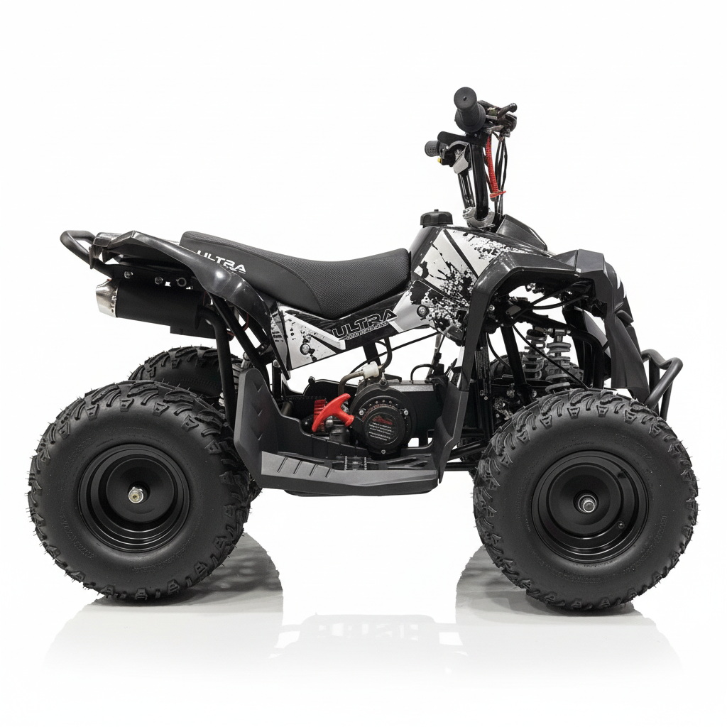 Met deze ATV Kinderquad Infinity 49CC Zwart haal je een topper in huis. Dit model kan een maximale snelheid van 40 km/h behalen. Het is niet de snelste kinderquad uit ons aanbod, maar we kunnen het ons goed voorstellen dat je als ouder wellicht liever hebt dat je kinderen op een wat rustiger model rijden. Bovendien is 40 km/h alsnog een behoorlijke snelheid voor een kind. Maar er zijn nog meer eigenschappen die dit model interessant maken.