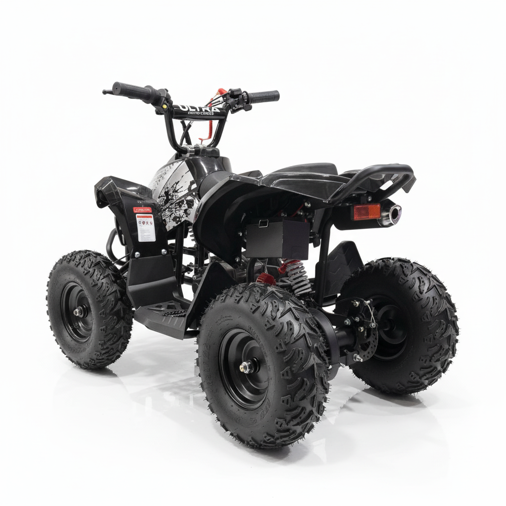 Deze ATV Kinderquad Infinity heeft een cilinderinhoud van 49CC. Bovendien is dit een 2-takt quad. Deze automatische kinderquad loopt op benzine. Het model heeft een elektrische start en een trekstarter. Het uiterlijk van dit model valt op. Hiermee bedoelen we niet alleen de stoere zwarte kleur, maar ook het supersterke frame. Deze 49CC kinderquad kan een hoop hebben. Het motorblok is van een hoog niveau en voorzien van de nieuwste technologie. Daarnaast is er een vernieuwde carburateur. Je kunt je wel voorstellen dat deze kinderquad op benzine uitmuntende prestaties levert.