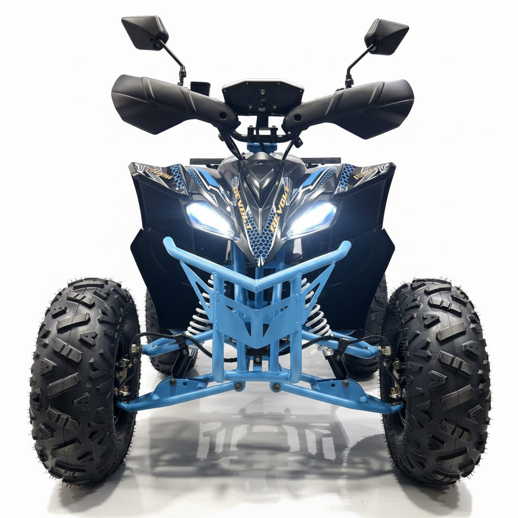 Deze elektrische kinderquad is blauw van kleur. Dit ziet er fenomenaal uit. De stoere uitstraling wordt nog eens versterkt dankzij de felle ledverlichting. Bijkomend voordeel van deze verlichting is dat de quad te allen tijde goed zichtbaar is. Deze kinderquad kan zowel voor- als achteruit rijden en het is een fluitje van een cent om deze kinderquad te bedienen. Deze 1500 watt brushless kinderquad met boost functie tot circa 4500W heeft ook een neutrale stand. De maximale snelheid van deze elektrische kinderquad is 45 km/u. Je kunt de maximale snelheid ook instellen op 8 km/u of 25 km/u met behulp van de standen.