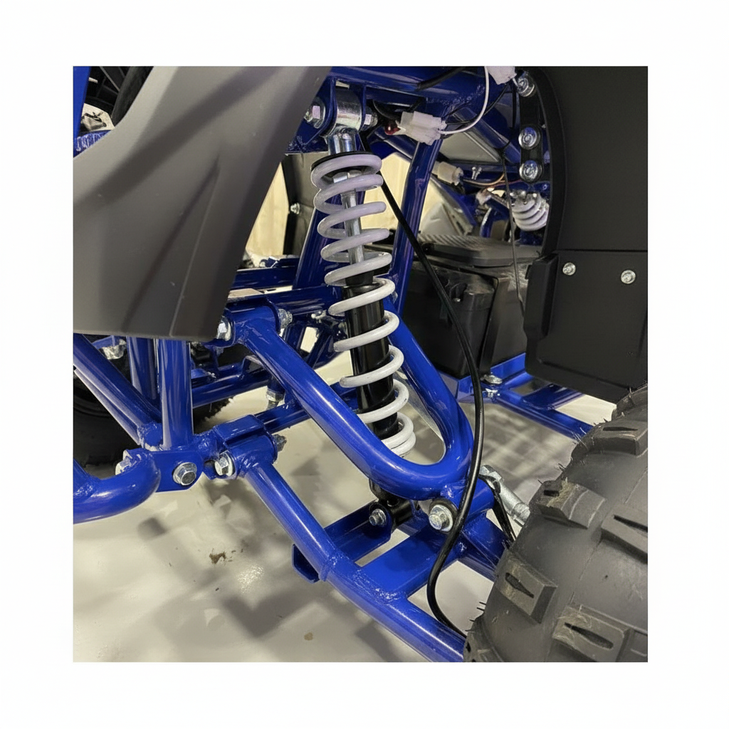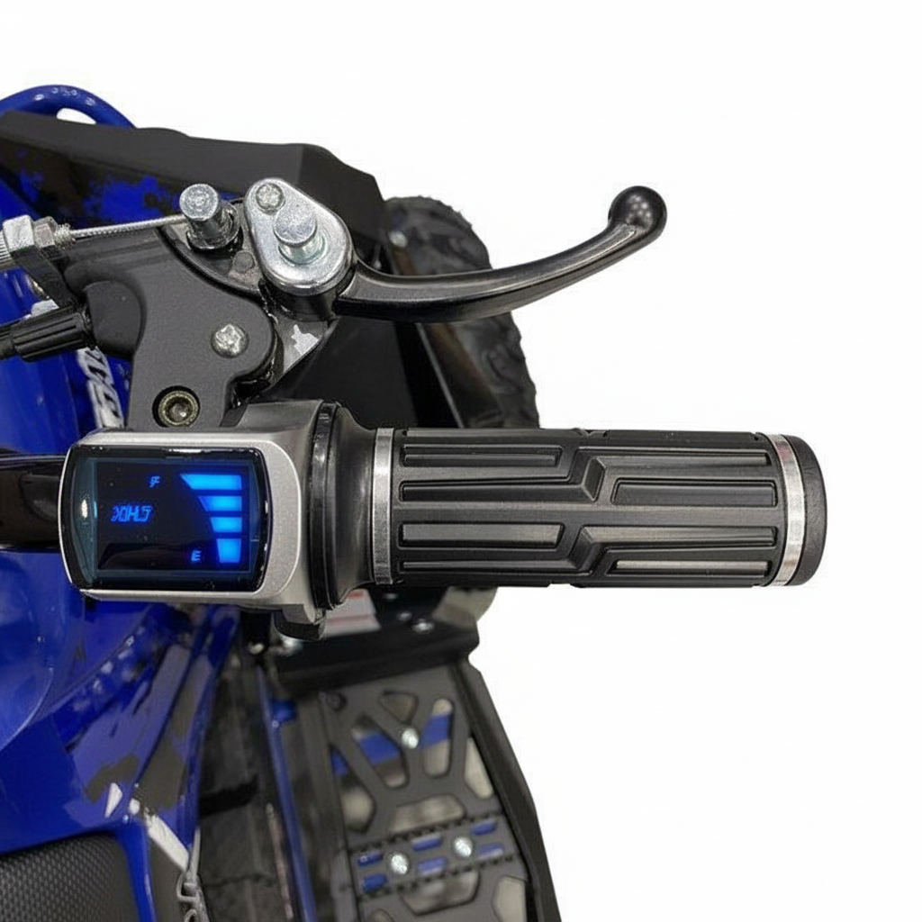 Met zijn strakke blauwe afwerking is deze Elektrische Kinderquad 1000W één van de mooiste kinderquads uit ons assortiment. Deze kinderquad is elektrisch en is voorzien van een 48V accu. Dat is beter voor mens en milieu in vergelijking met quads die op benzine lopen. Bij een kinderquad wordt een oudersleutel meegeleverd en kan de snelheid begrensd worden, zodat je kind kan rondrijden op een manier die je comfortabel vindt. Kinderen vinden dit ontzettend leuk speelgoed, onder meer omdat er veel mogelijkheden zijn. Rijden op de weg, op het eigen terrein, in de weide, door het zand of op een crossbaan: met deze 1000W kinderquad kan het allemaal.