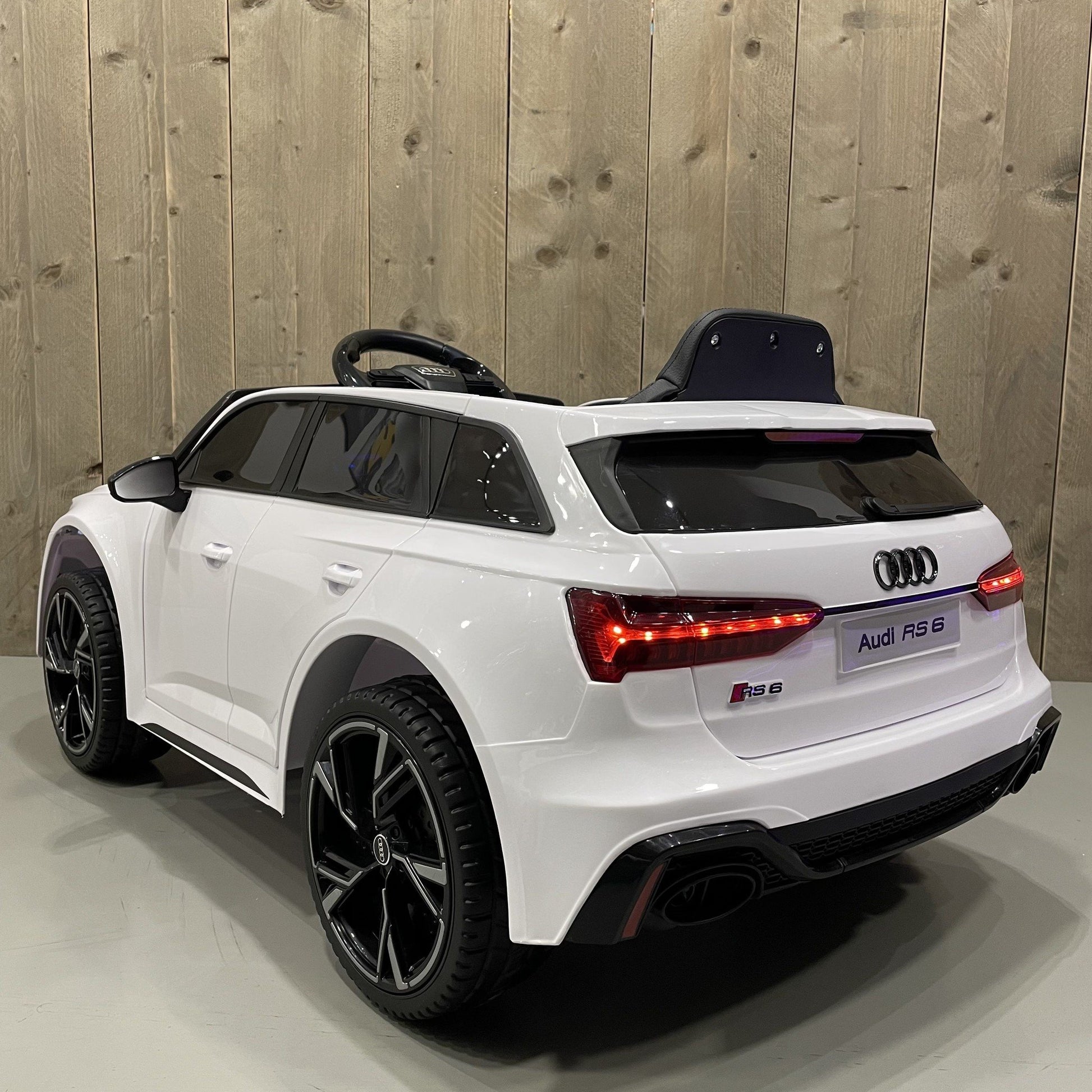 De officieel gelicenteerde Audi RS6 kinderauto is een mooie kinderauto om te zien. De Audi RS6 elektrische kinderauto beschikt over leuke opties waaronder authentieke LED-verlichting, een leren stoel en voor een extra comfortabele rit beschikt deze elektrische kinderauto over rubberen banden en vering. De rubberen banden zorgen ervoor dat de auto buiten ook op verschillende soorten ondergronden te rijden is.