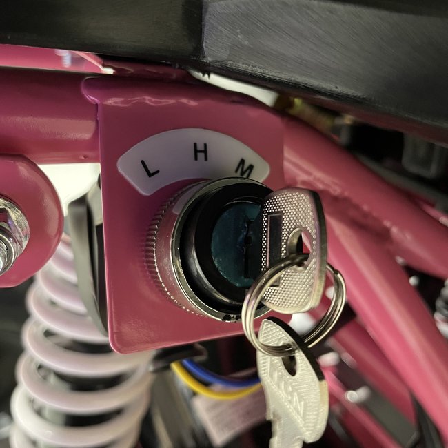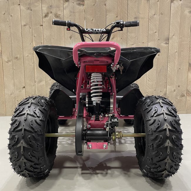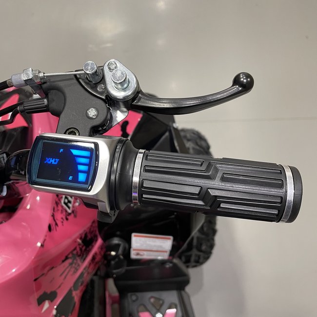 Deze elektrische kinderquad is roze van kleur. Dit ziet er fenomenaal uit. De stoere uitstraling wordt nog eens versterkt dankzij de felle ledverlichting. Bijkomend voordeel van deze verlichting is dat de quad te allen tijde goed zichtbaar is. Deze kinderquad kan zowel voor- als achteruit rijden en het is een fluitje van een cent om deze kinderquad te bedienen. Deze 1000 watt brushless kinderquad heeft ook een neutrale stand. De maximale snelheid van deze elektrische kinderquad is 30 km/u. Je kunt de maximale snelheid ook instellen op 5 km/u of 15 km/u met behulp van de uitneembare sleutel. Zo behoud je als ouder zelf de controle.