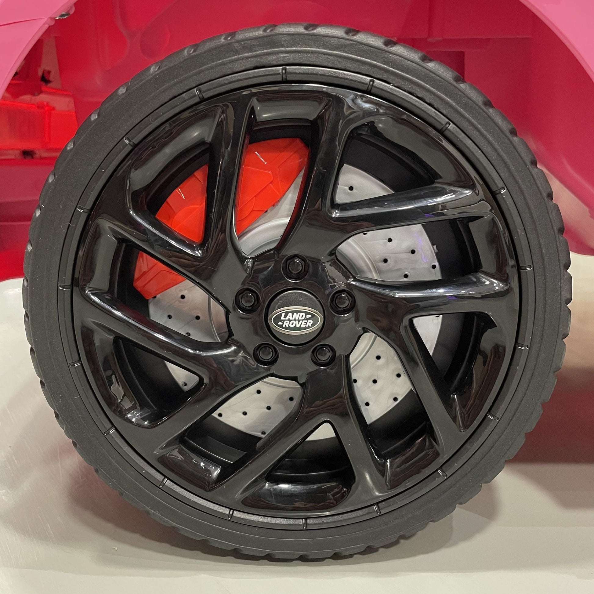 Dankzij de strakke roze kleur valt deze Range Rover Velar SVR kinderauto meteen op. Het perfecte cadeau voor zoons en dochters. Dit is niet zomaar een Range Rover Velar, want dit model behoort tot de SVR varianten. Hierdoor beschikt deze kinderauto over een extra sportief uiterlijk. Daarom ziet deze SUV bolide er zo stoer uit. De dikke velgen, rode remklauwen en de stevige stoel dragen bij aan de geweldige uitstraling van deze Range Rover kinderauto. Omdat dit een officieel gelicentieerd model is, mogen wij alle logo’s, stickers en badges van Land Rover gebruiken.